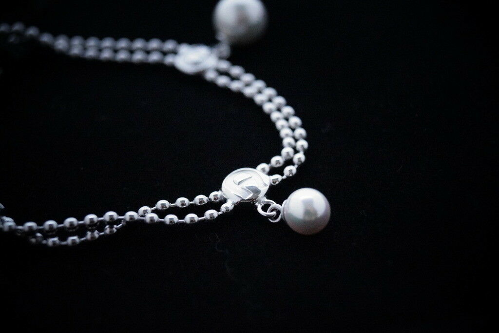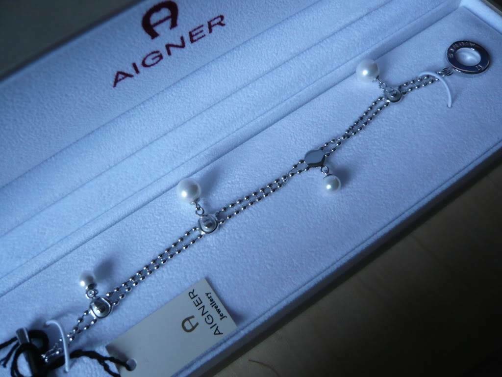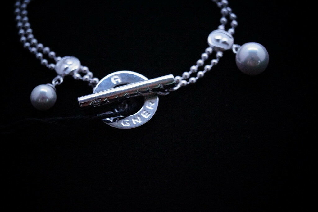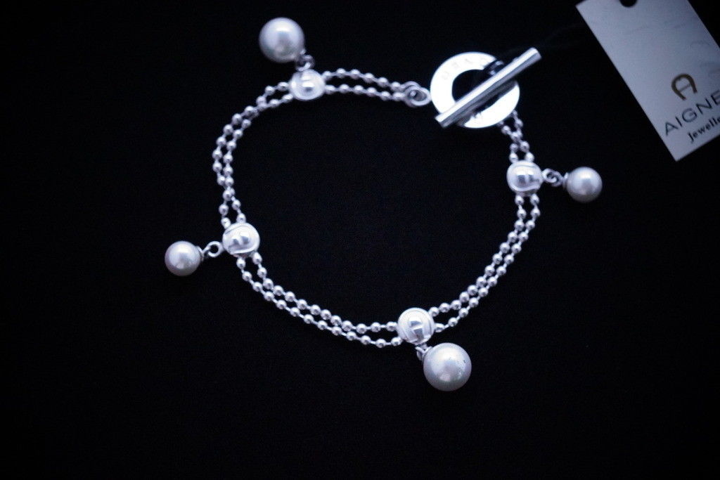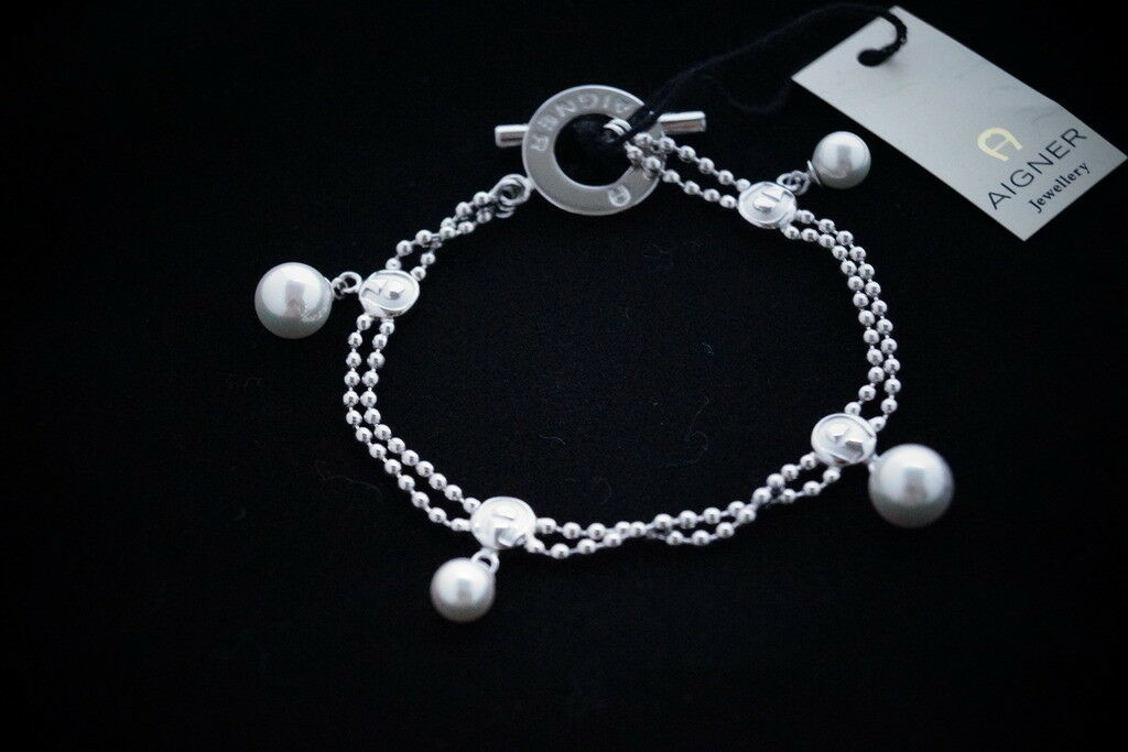 tolles Schmuckstück der Kultmarke AIGNER Silberfarbenes Perlenarmband mit mit 4 synth.-Perlen-Anhängern. Garantiert immer ein Hingucker!
