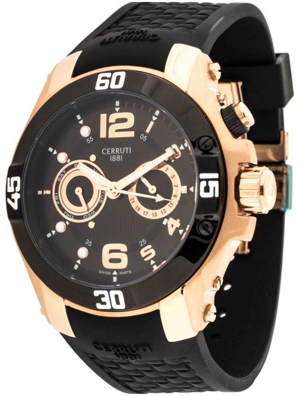 exklusiver XL Herren.Chronograph aus der Cerruti 1881 Schmiede mit robustem Kautschuk-Armband. Klasse Look!