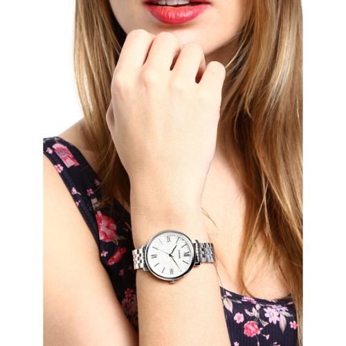 Klassisches Design trifft auf moderne Proportionen. Unsere einzigartige Jacqueline ist ein kunstvoll gestaltetes Modell für Frauen mit Stil und Raffinesse. Das besondere beim Modell ES3803: der perlmuttartige Zifferblatt.