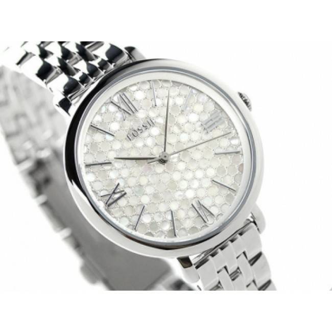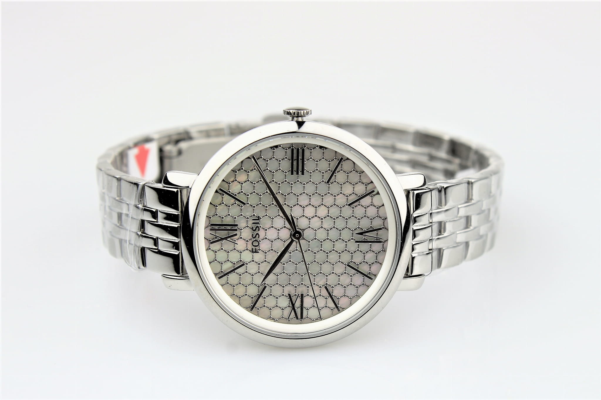Zierlich ist das Armband, groß das Ziffernblatt, abwechslungsreich sind die Styles: Die uhren aus der Kollektion Fossil Jacqueline gefallen sportlichen Frauen genauso wie Ladys, die klassisches Design zu schätzen wissen. Modebewusste Damen wählen die Uhren entweder mit einem Armband aus Edelstahl oder mit einem Armband aus echtem, weichem Leder. Das Gehäuse ist jeweils aus stabilem Edelstahl gefertigt und erstrahlt entweder im klassische Silber oder im edlen Rosé-Gold. Das Ziffernblatt ist schlicht und besticht gerade deswegen durch seine zeitlose Eleganz. Große, römische Ziffern zeigen zuverlässig die Zeit an, Minutenstriche machen das Ablesen der Uhr leicht. Am unteren Rand findet sich zudem eine Datumsanzeige. Jede Fossil Damenuhr aus der Jacqueline Kollektion lässt sich hervorragend kombinieren: Im Büro ergänzt sie stilvoll das klassische Kostüm und die Bluse, in der Freizeit passt sie zum T-Shirt und zur lässigen Jeans. Mit einer Fossil Jaqueline Uhr haben Damen das perfekte Accessoire immer am Handgelenk.