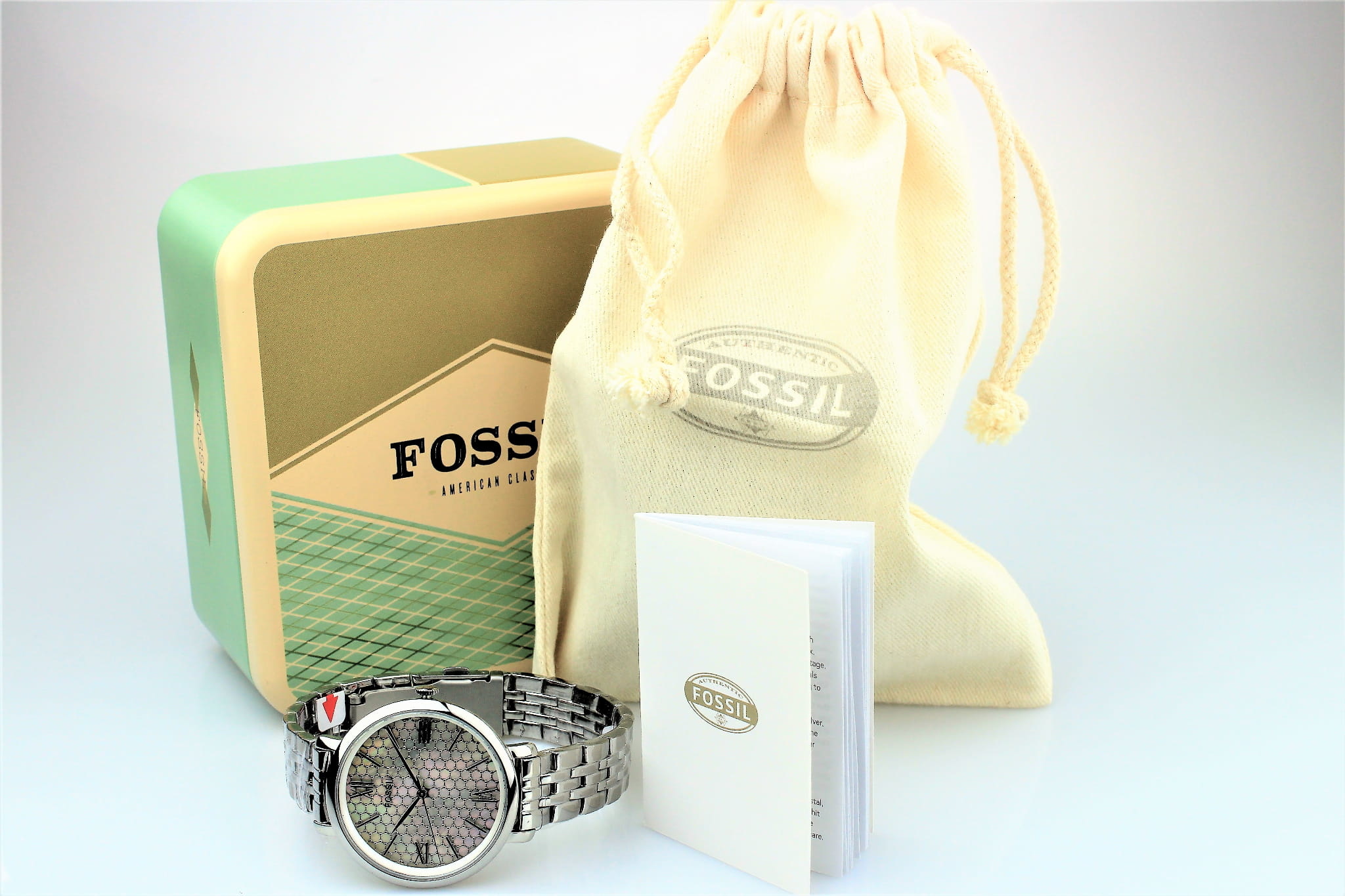 Die charmante Vintage-Ausstrahlung der Fossil Jacqueline Damenuhren ist das Markenzeichen des US-amerikanischen Labels. Seit 1984 präsentiert Fossil Uhren für Damen und Herren, die stilvolles Design und innovative Technik mit günstigen Preisen verbinden. Auch für eine Fossil Damenuhr aus der Jaqueline Kollektion muss niemand tief in die Tasche greifen: Zum günstigen Preis können Damen die Uhren online kaufen und einfach im LooDoo Shop bestellen. In der charakteristischen Schmuckdose kommen die Uhren nach Hause und zeigen, wie schön sich zeitlose Elemente mit modernen Einflüssen verbinden. Die Fossil Damenuhren überzeugen durch ihre feminine Optik und durch Qualität: Edelstahl und Leder sind stabil und machen alle Belastungen des Alltags mit. Das Ziffernblatt stützt robustes Mineralglas. Wasserfest bis 3 bar sind die Uhren außerdem - echte Begleiter für jeden Tag eben.