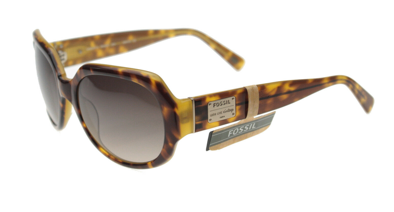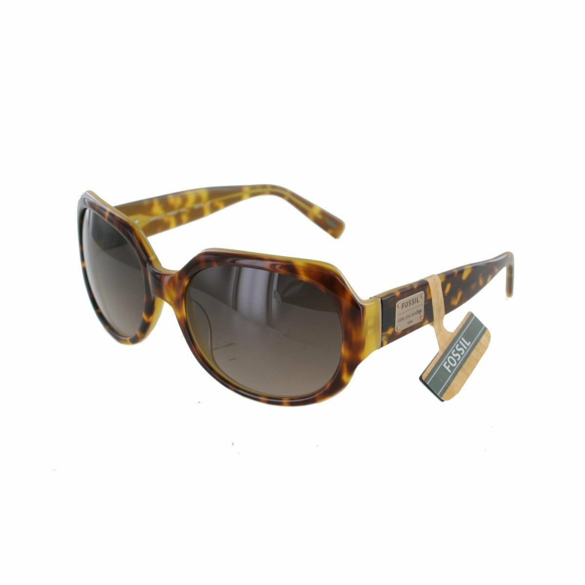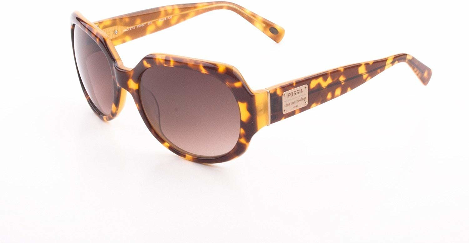schöne trendige, elegante gemusterte Sonnenbrille von Fossil mit goldfarbenen Seiten-Applikationen im Loren-Style.