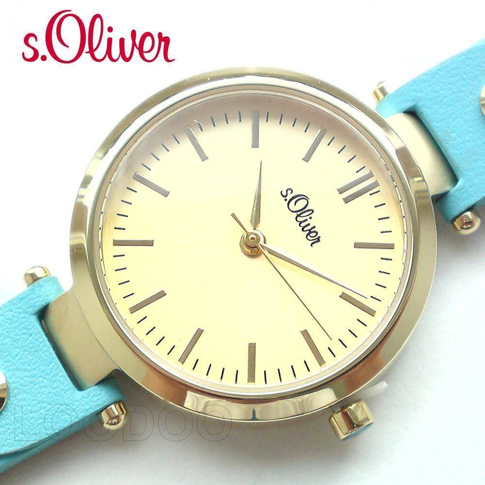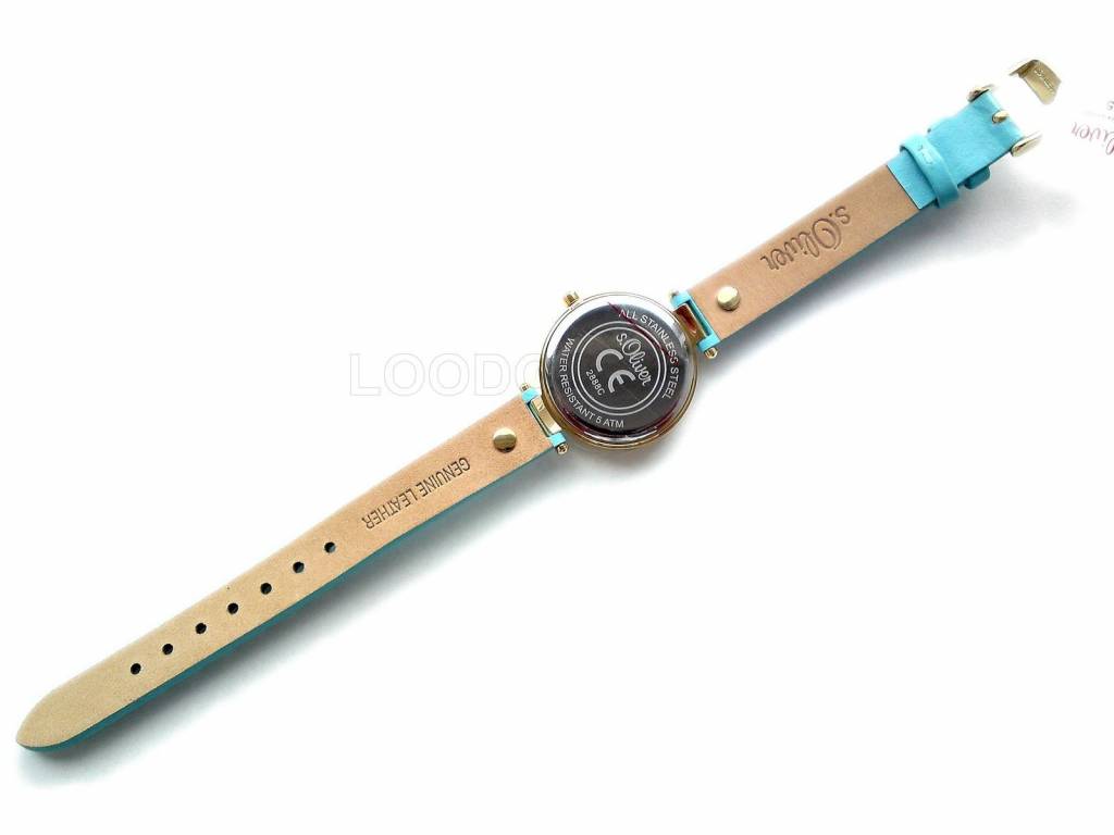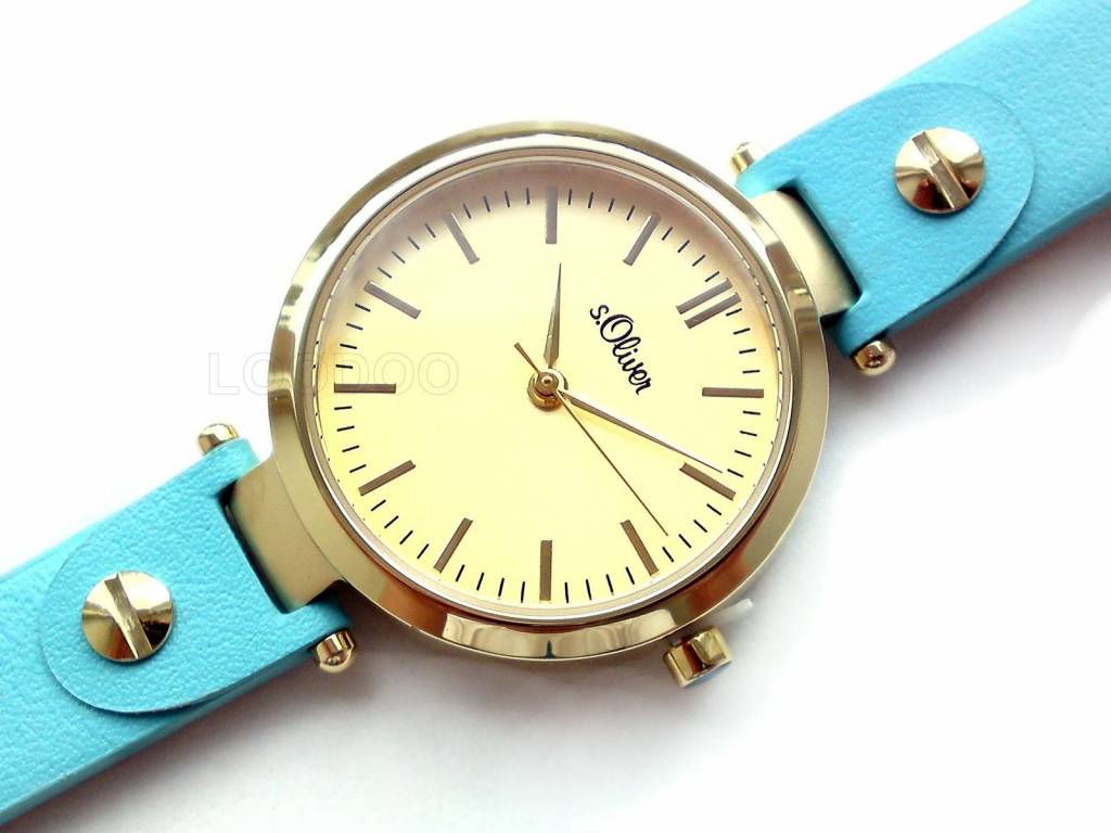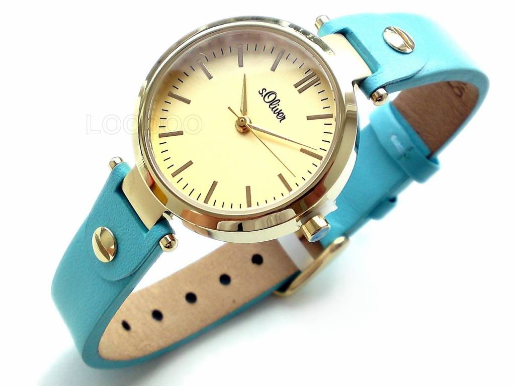 Damenuhr mit trendigem Gehäuse aus polierten Edelstahl mit goldfarbenem Beschichtung überzeugt mit der perfekten Kombination aus schlichter Eleganz und originellem Design. Highlight ist das schmale, hochwertig verarbeitete, türkis-blaue Lederband.