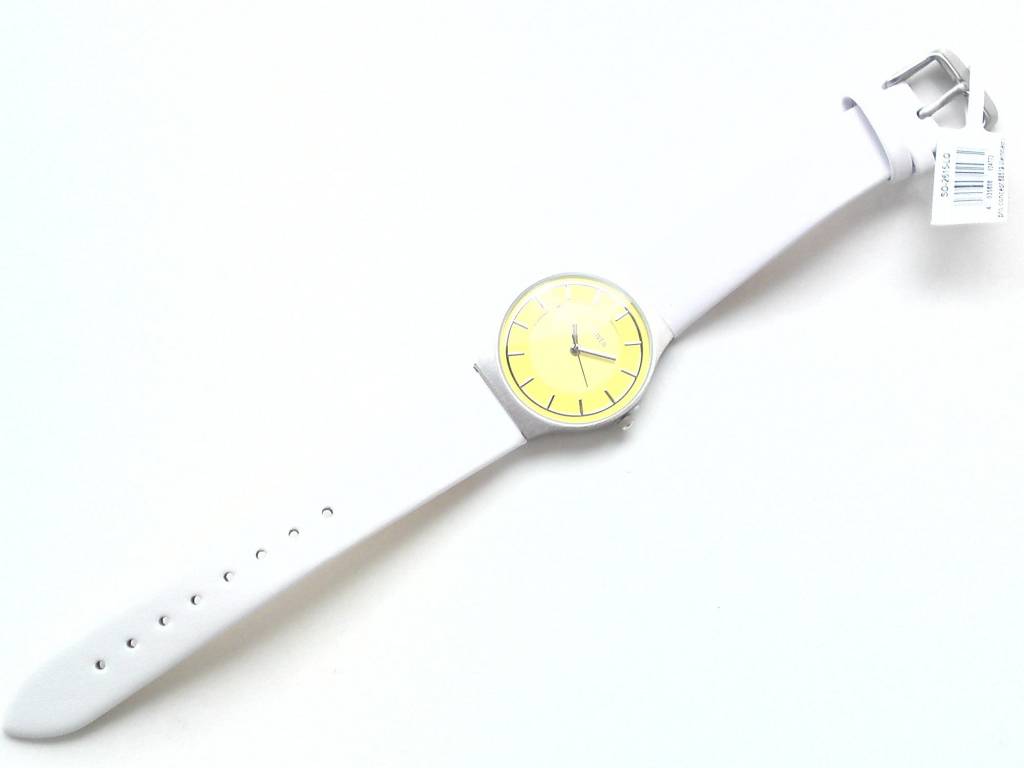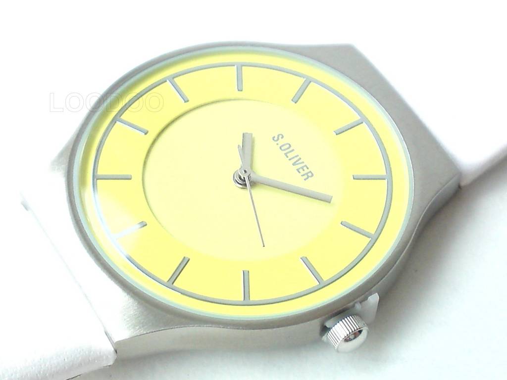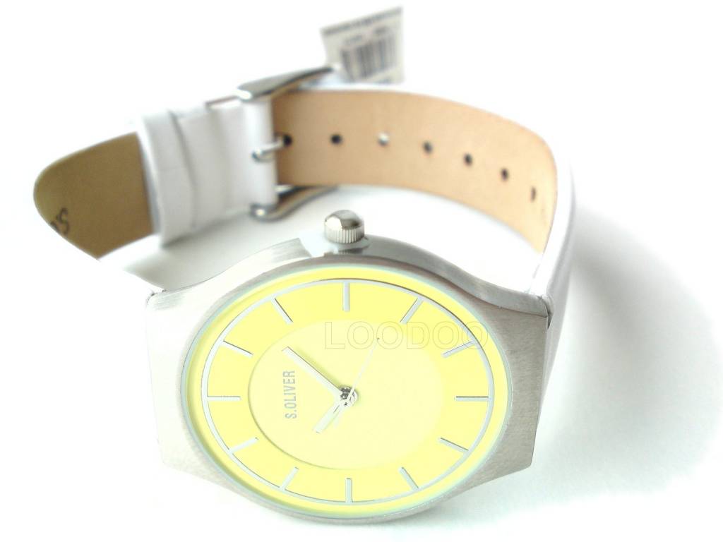 Moderne Damen Armbanduhr mit weißem Lederband und zitronengelben Ziffernblatt